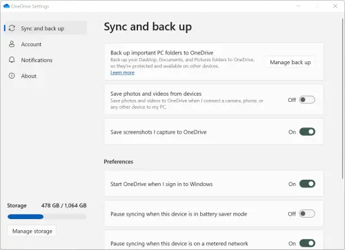 1. In the “Sync and backup” section, click on “Manage backup”.