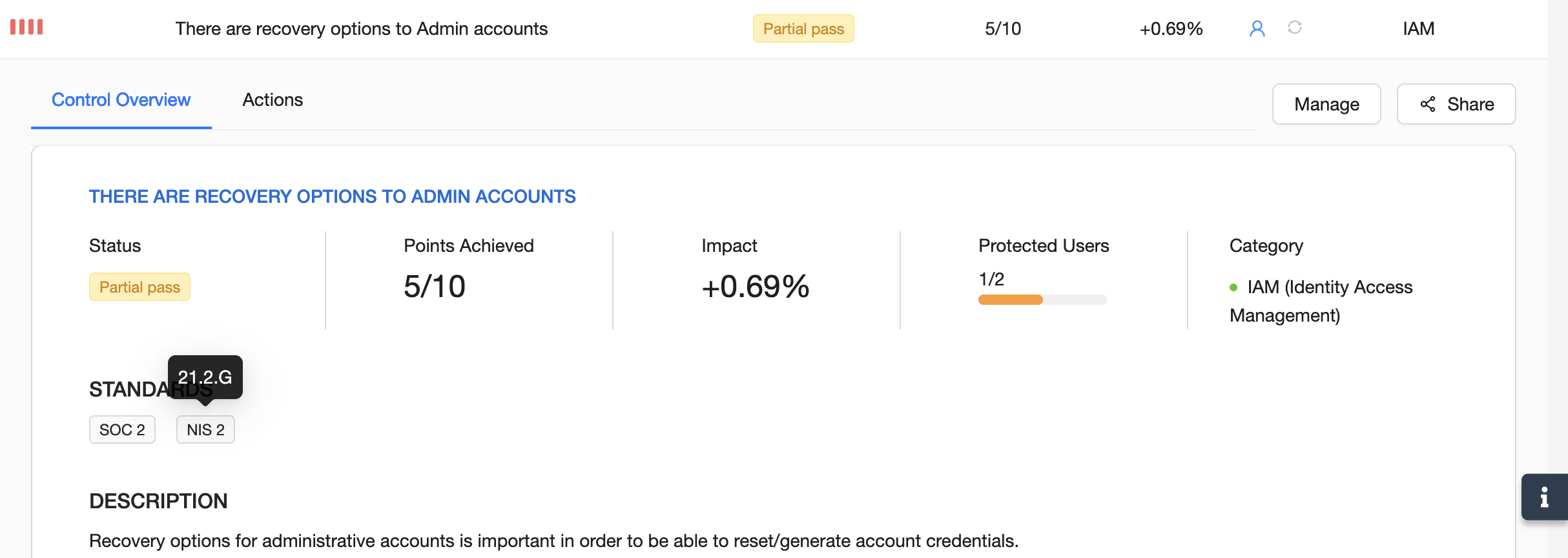 Based on customer feedback and demand, we mapped our SpinSPM controls to NIS2. This is very helpful for customers who are working on their NIS2 compliance. Each control on SpinOne, if applicable, will indicate whether it is mapped to NIS2 and when the user hovers over the label, they can see the exact section to which we’ve mapped the control.