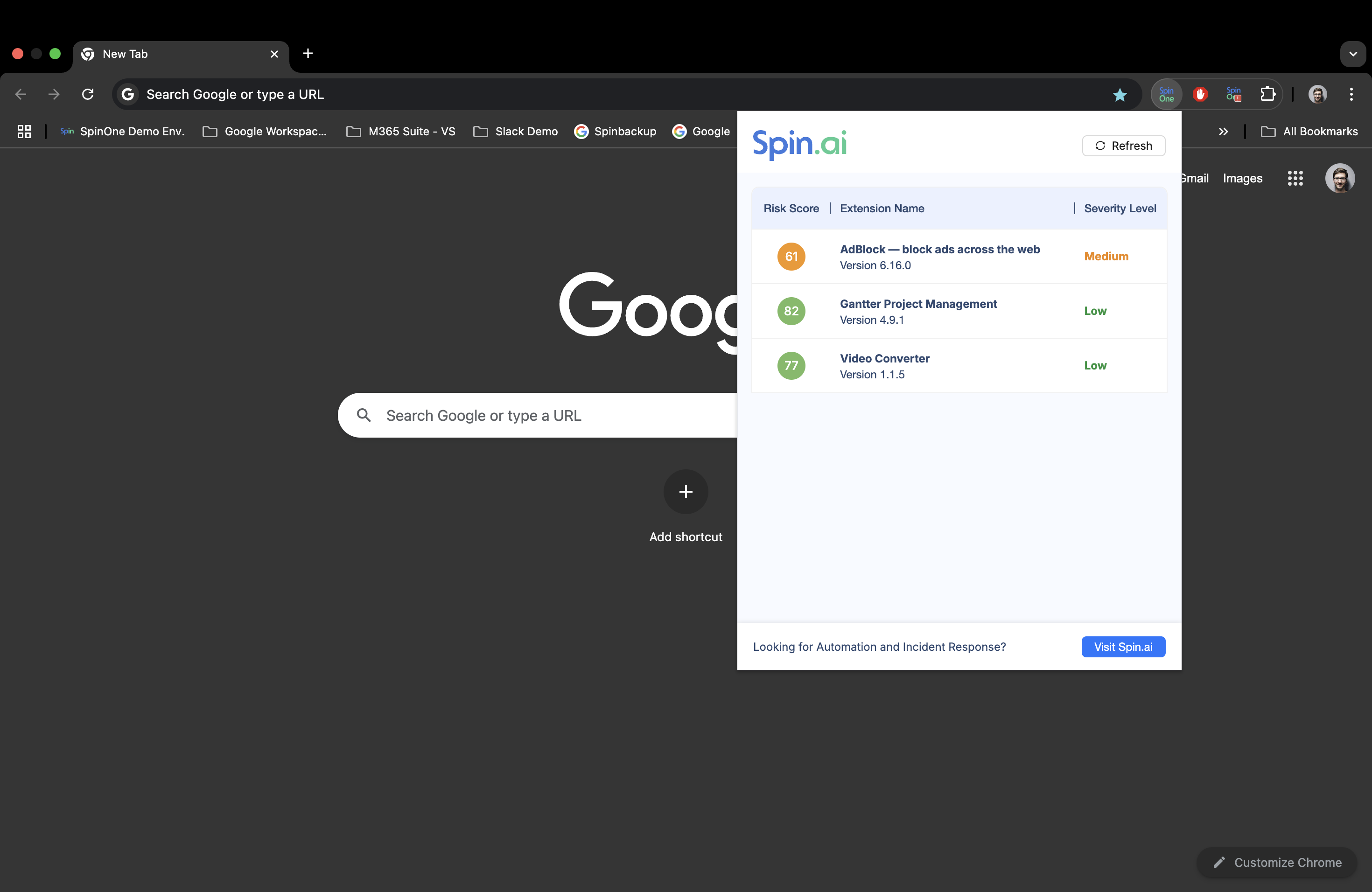 For Google Chrome and Microsoft Edge, Spin.AI proudly released SpinMonitor Free Extension Security Checker. Empowering anyone to safely and in an informed fashion, utilize browser extensions. With visibility into our entire registry of nearly half a million risk assessed extensions, Users can see all of their extensions as well as a Risk Score rating of their extensions.