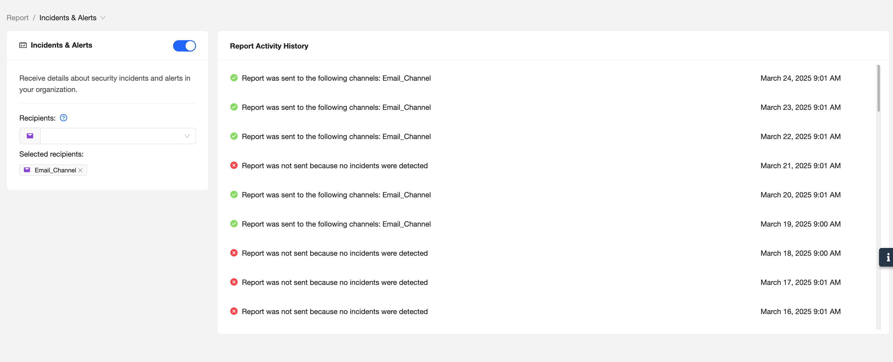 To receive notifications when security incidents have been detected or security policies have been breached, head to the Reports section of the left hand toolbar and select Incidents & Alerts.