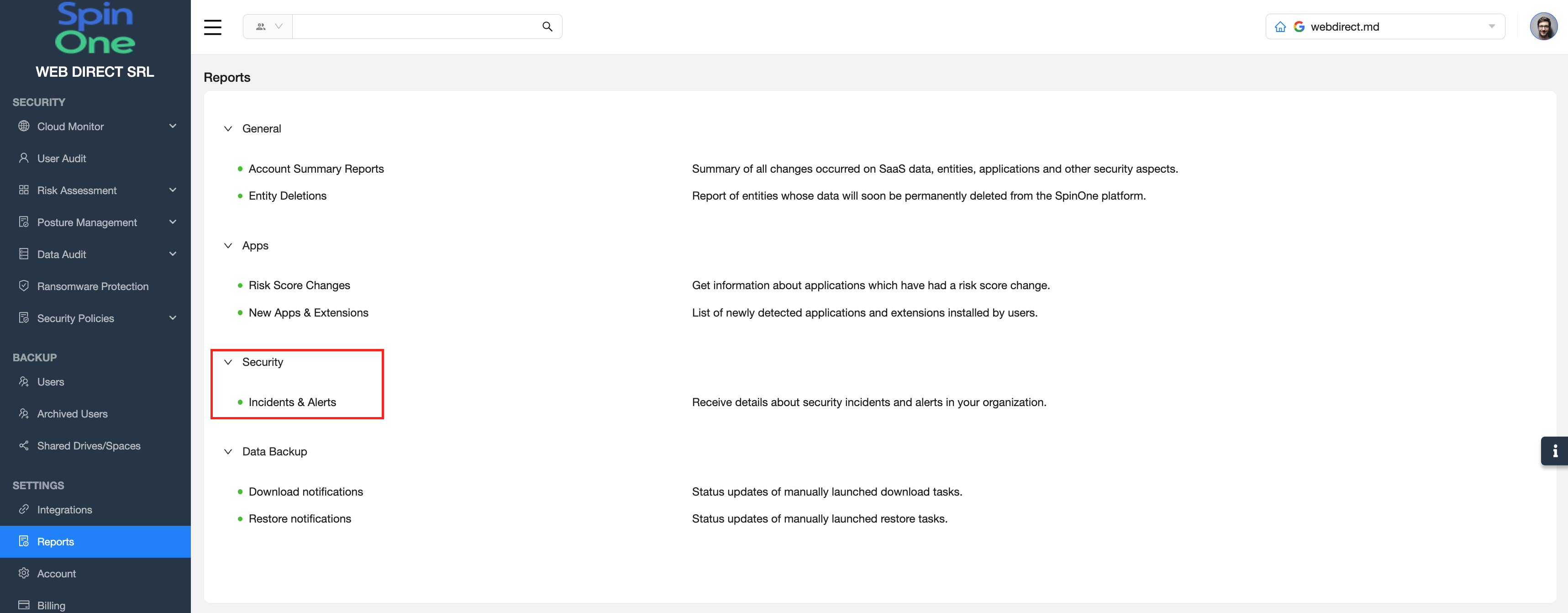 Need reporting in SpinOne? Learn how to set up reports about General account services, Security incidents and Backup Services.