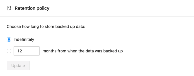 If for compliance or legal purposes the timeframe needs to be shortened, simply enter the number of months you wish the retention policy to be.