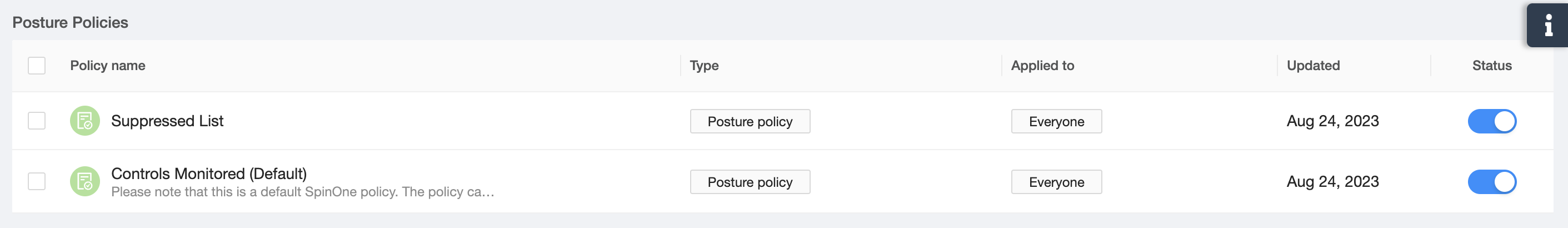 By default, all Posture Management controls are monitored for all active users on the SpinOne platform.