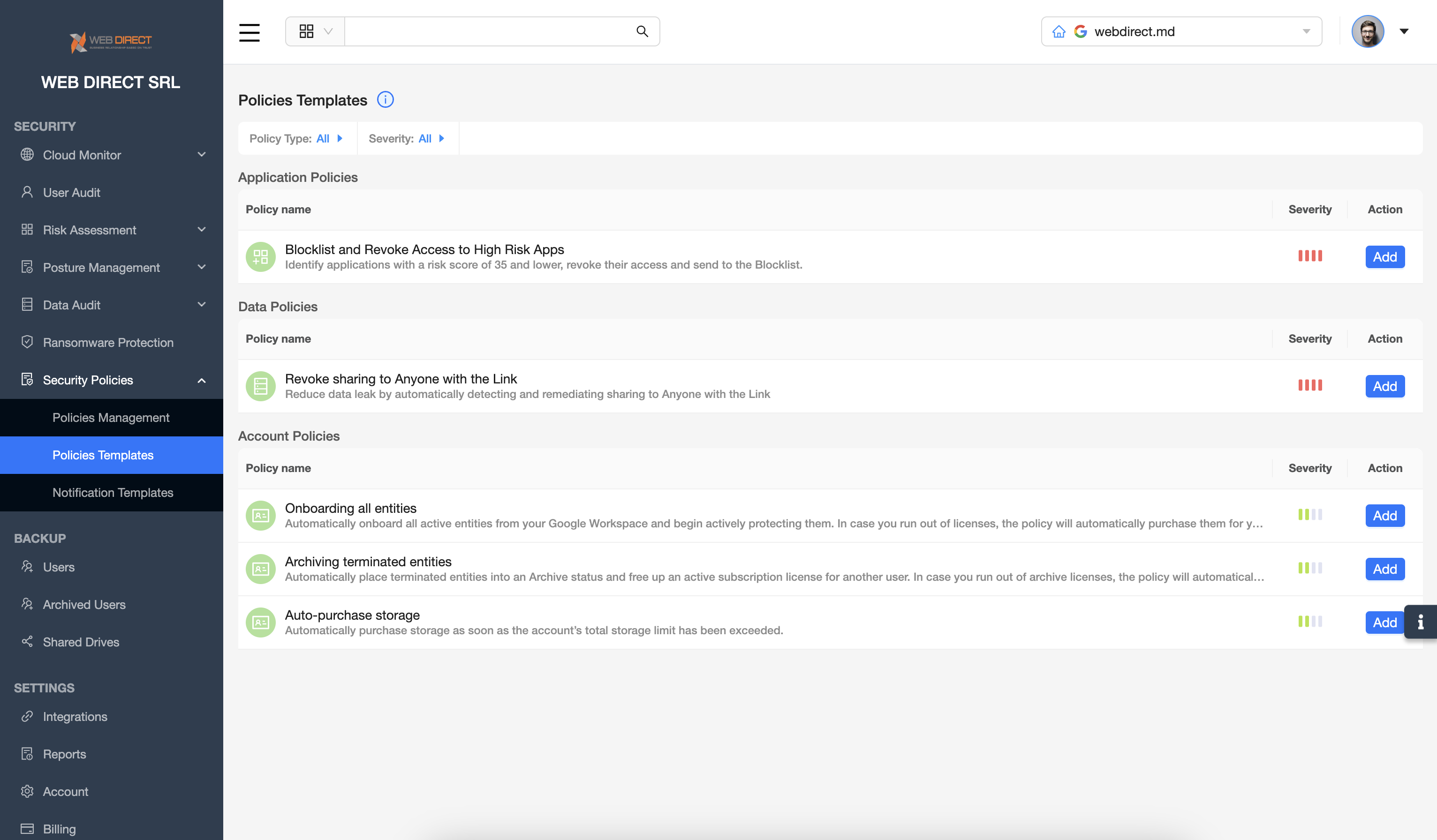 To help you in maximizing use of our security policies, you can utilize our Policies Templates.