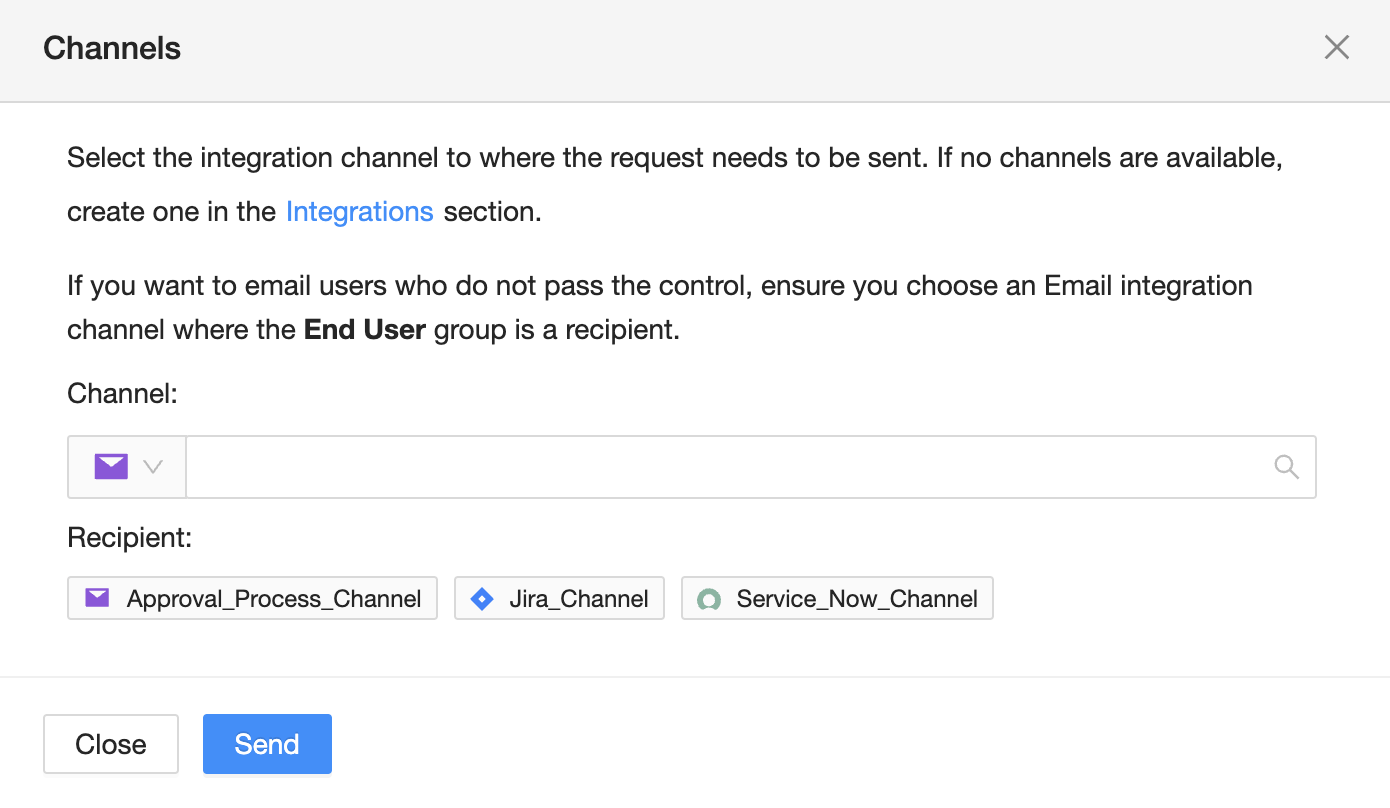 Share allows you to share the control to Email, Jira, & ServiceNow integrations. This allows you to assign the control to different departments within the organization by creating a ticket for them, or acts as a way to notify End Users of changes need to be made from their end.