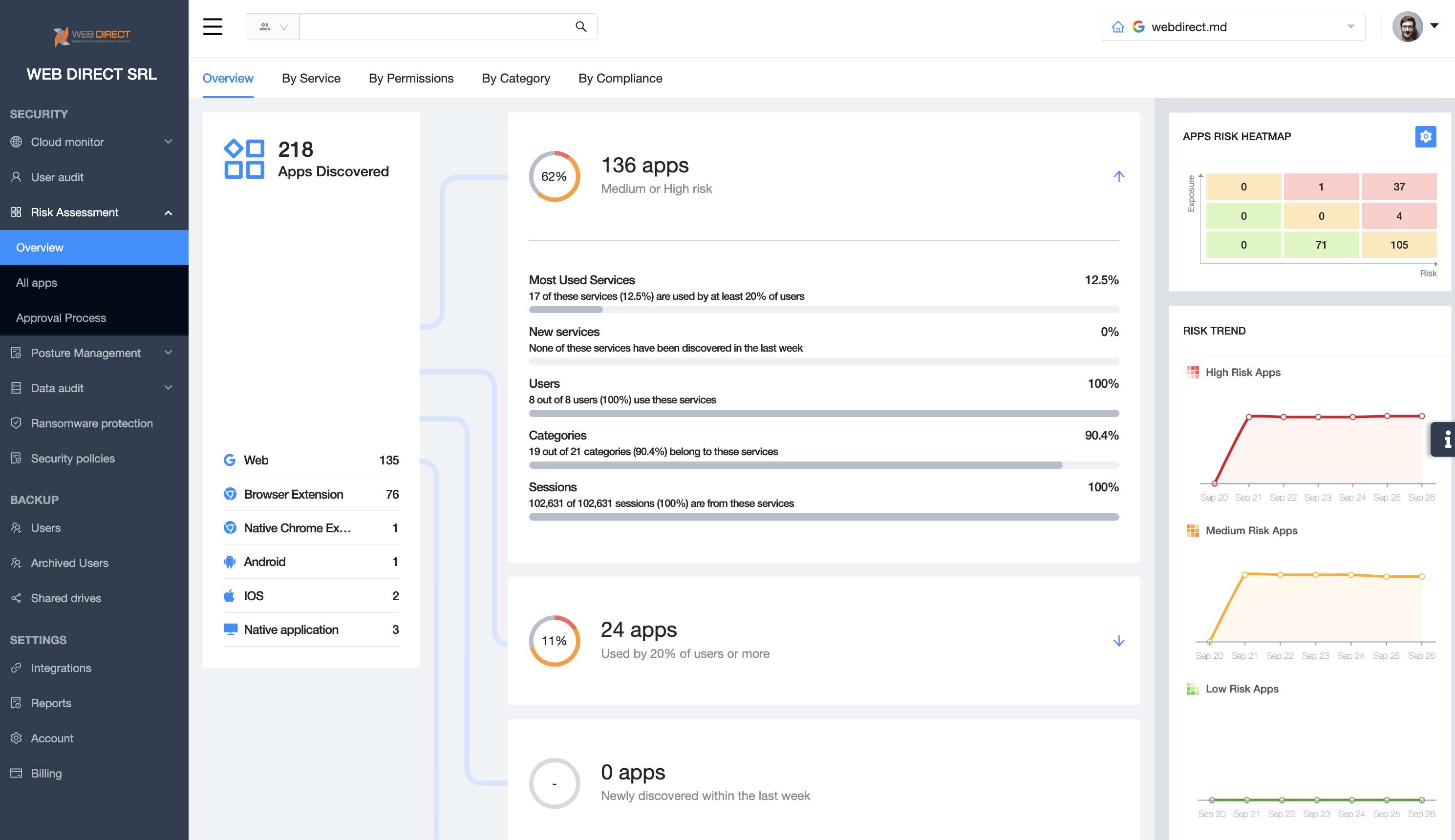 Head to the Risk Assessment Overview section from the left panel to uncover insights on all your applications.