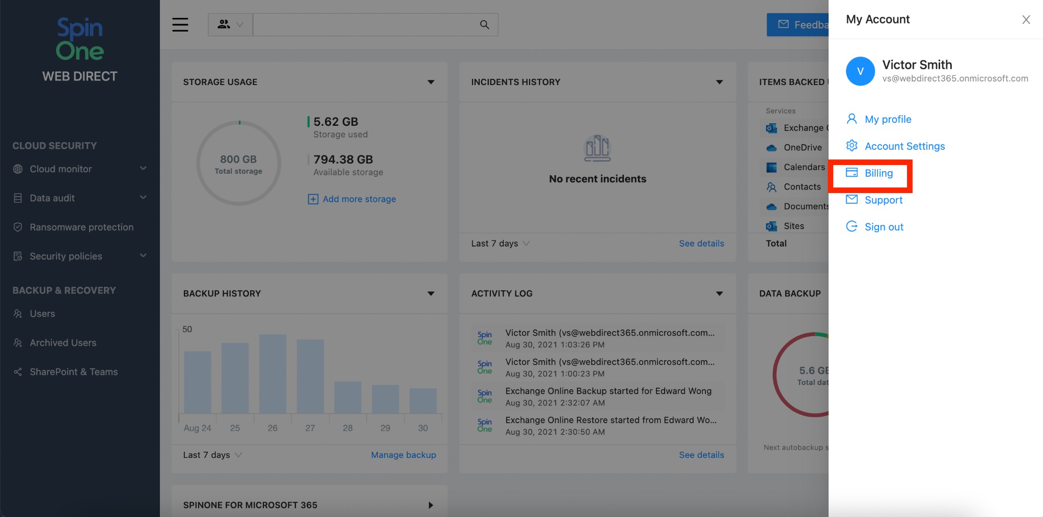 Once you have completed these steps, head to the Users section of Backup & Recovery from the left panel in order to start assigning your new licenses.