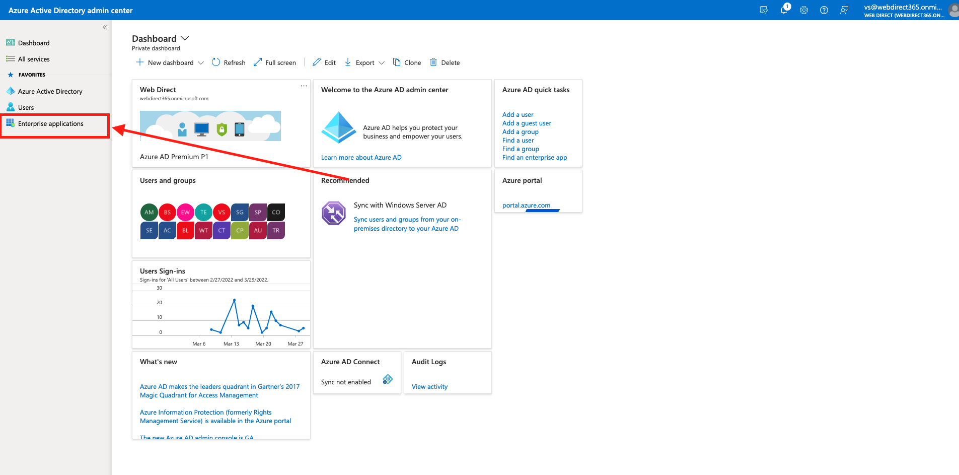 Head to https://aad.portal.azure.com/ and login with the Super Administrator of your O365 organization, and click on Enterprise applications from the left panel.