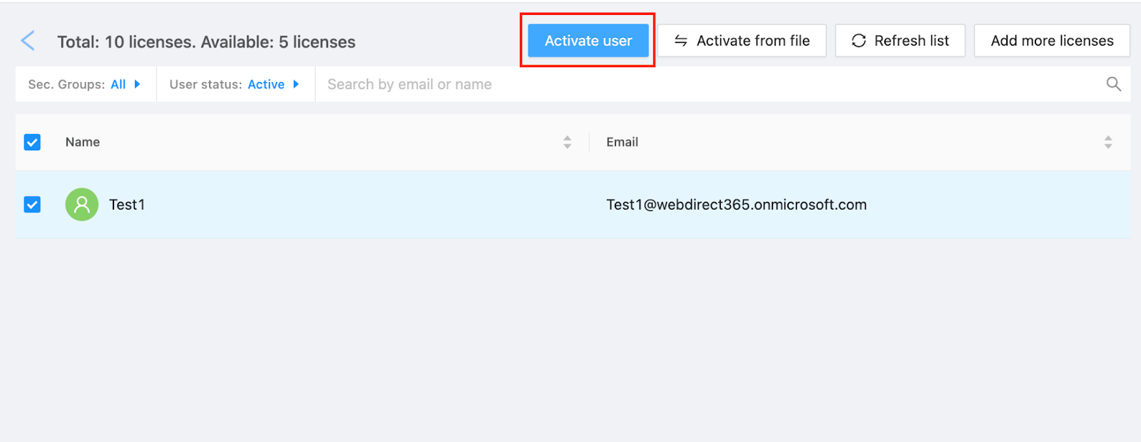 Simply login to the SpinOne platform and head to the Add users section. Select the users you would like to activate and click Activate users.