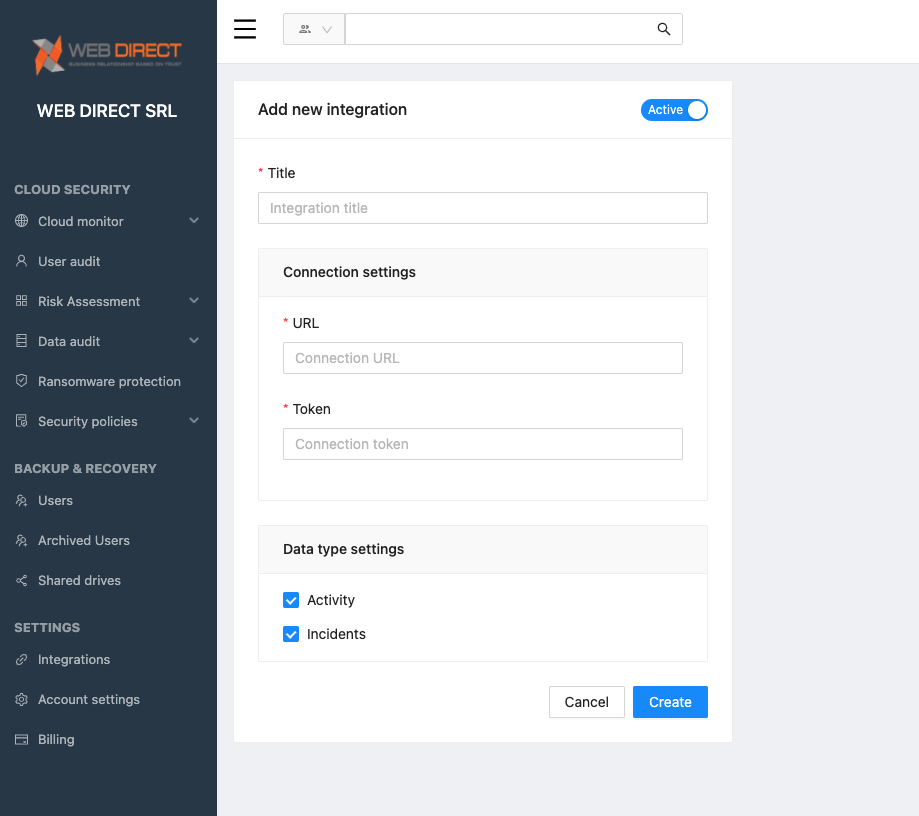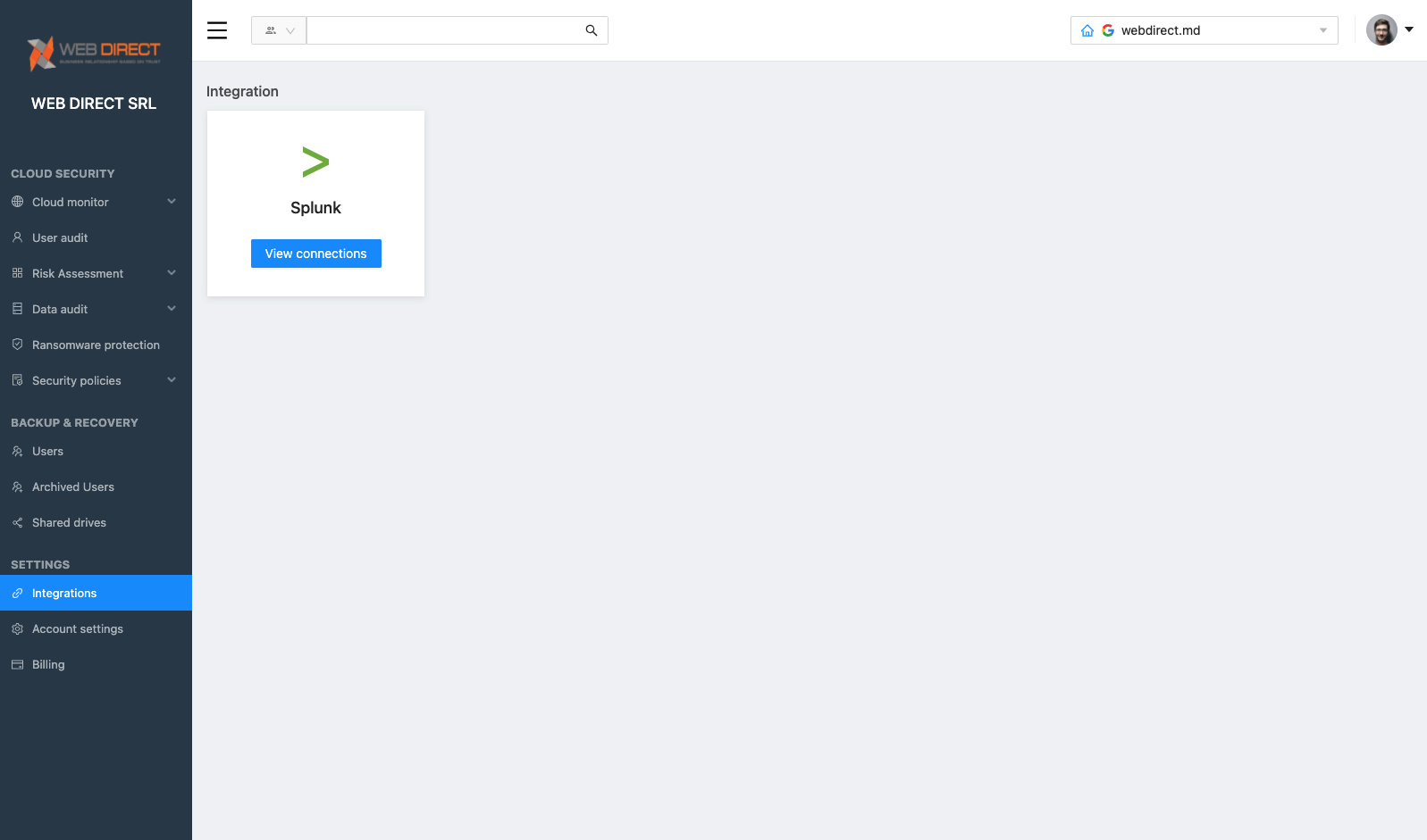 1) Login to the SpinOne console and head to the Integrations section from the left panel.
