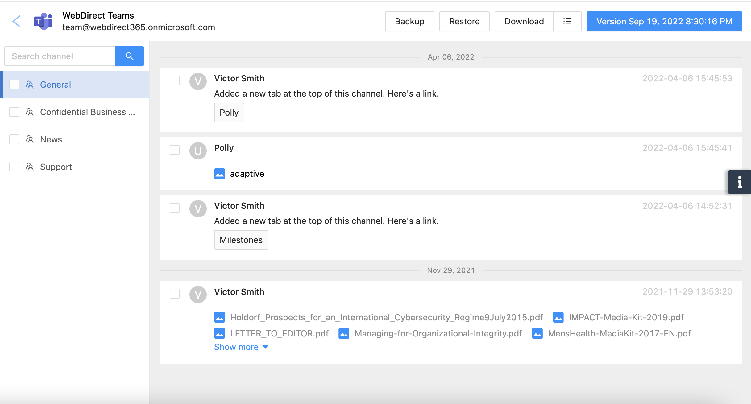 Backup & Recovery for Teams Channels