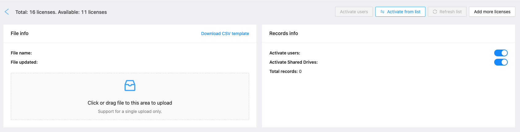 Onboarding Users and Shared Folders can be tiring and a long process, especially for large organizations. SpinOne is proud to announce Bulk Activation through CSV uploads. Prepare a CSV of all users and folders that need to be activated, upload the file, and Activate!