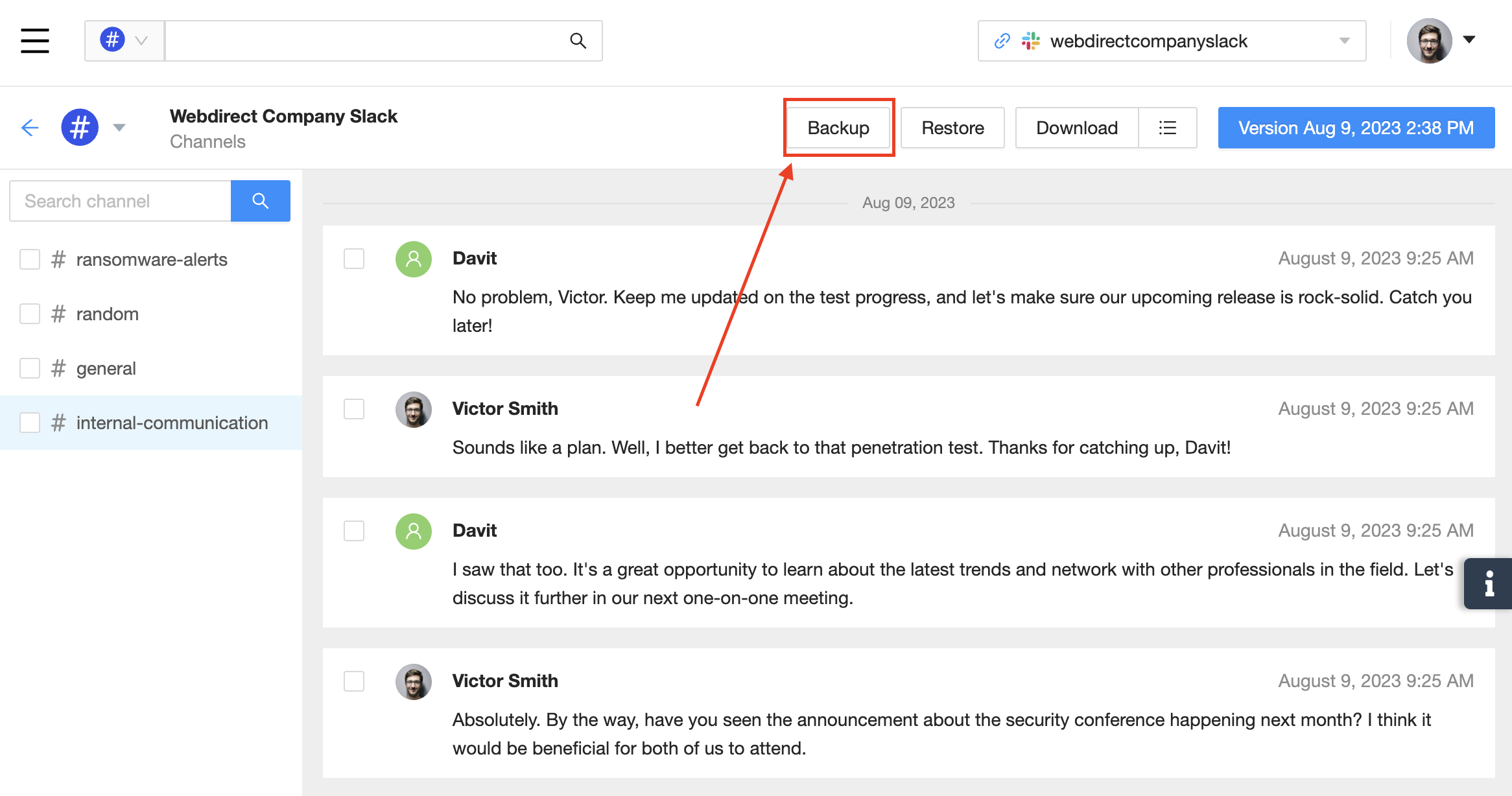Select Channels or Messages to head to the backup area, and click Backup to launch an on-demand backup!