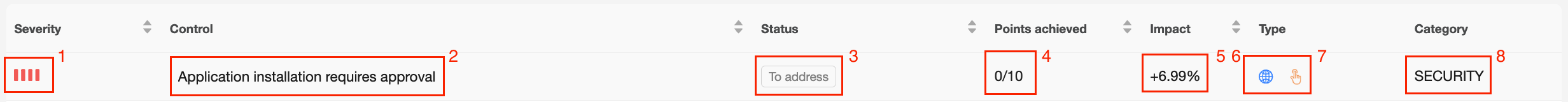- Impact – The percent increase of the overall Posture Score once the control is completed
