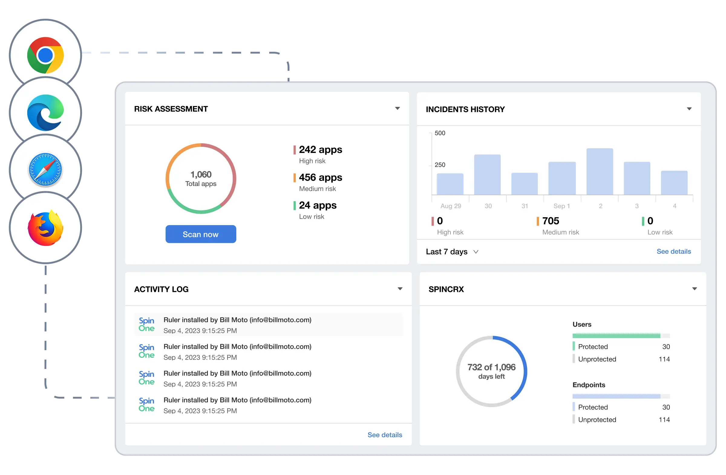 It runs 24/7 on every device in your organization to protect against web-based security threats. Gone are the days of individually researching every extension. SpinCRX automates the process to deliver browser security around the clock.