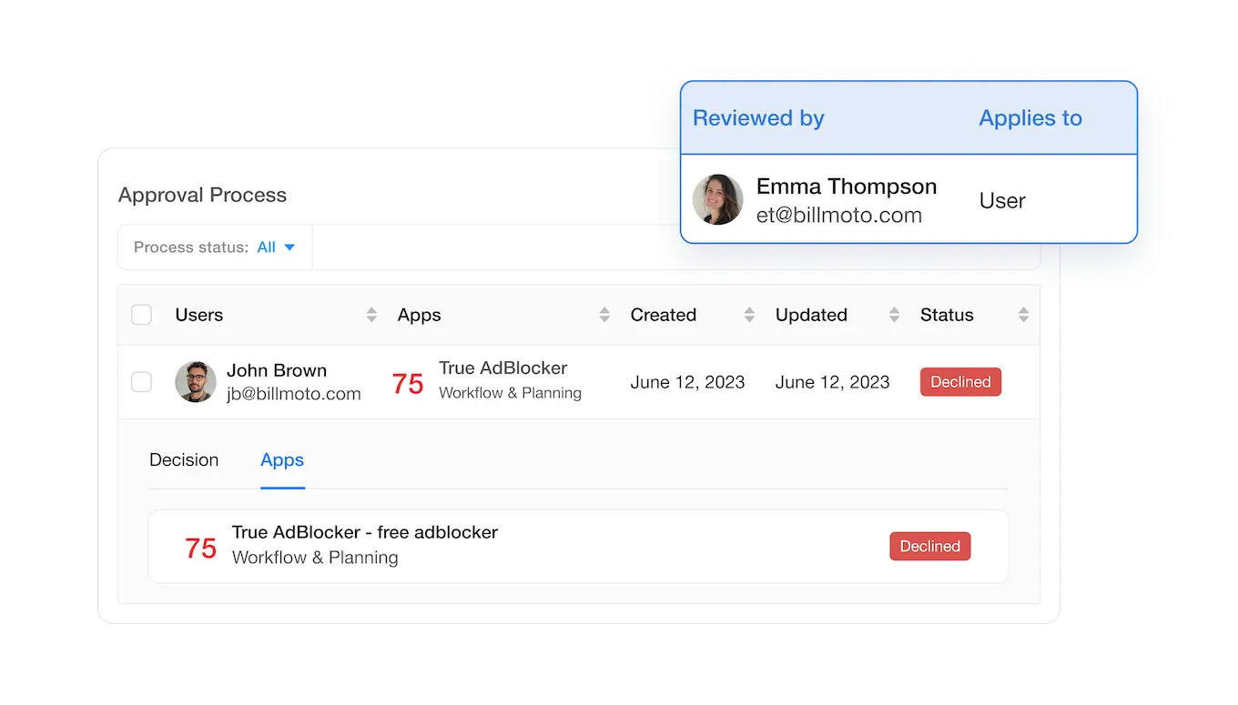 Automate access management by with configurable, granular security policies to monitor, alert, and blocklist / allowlist applications and browser extensions based on set criteria.